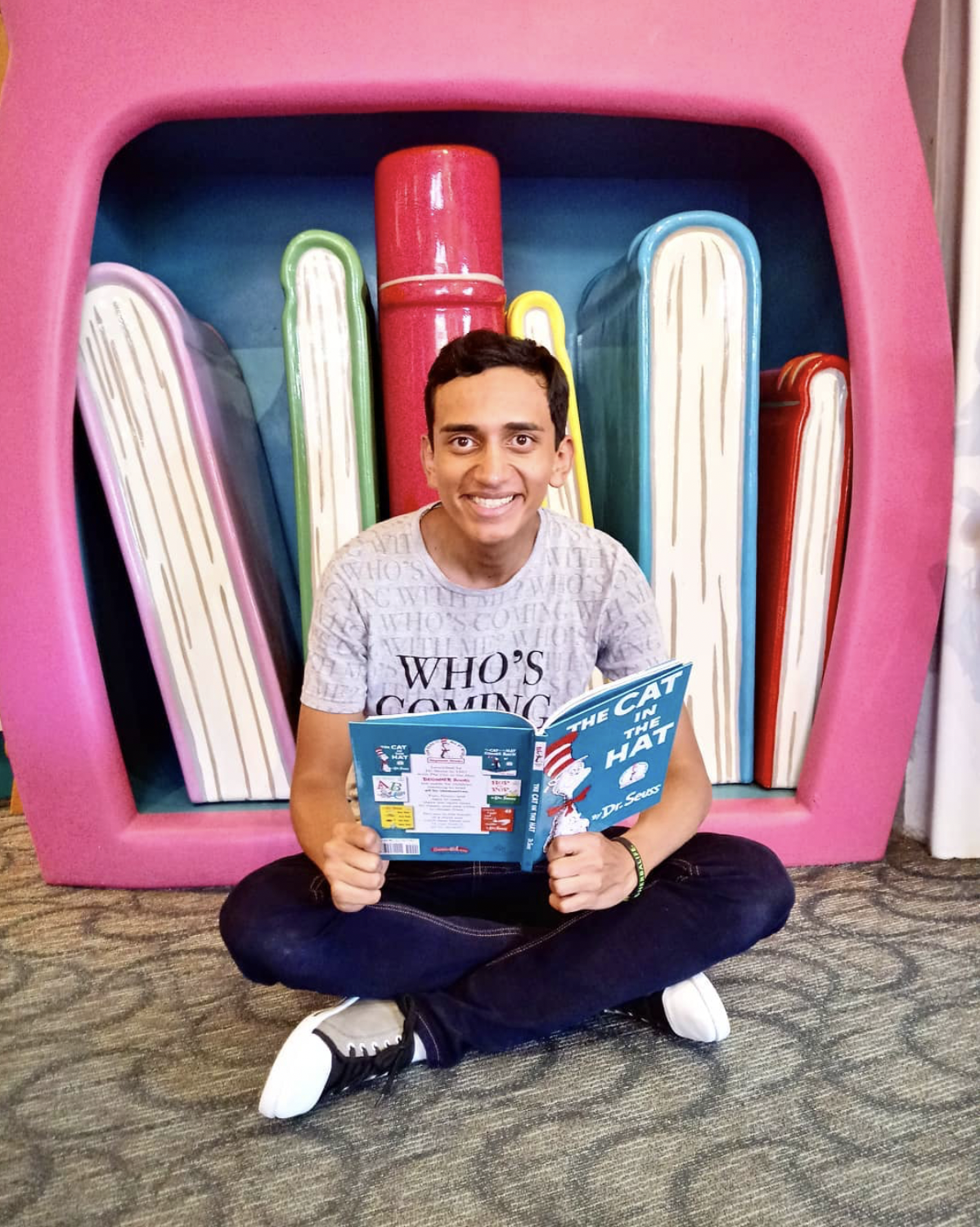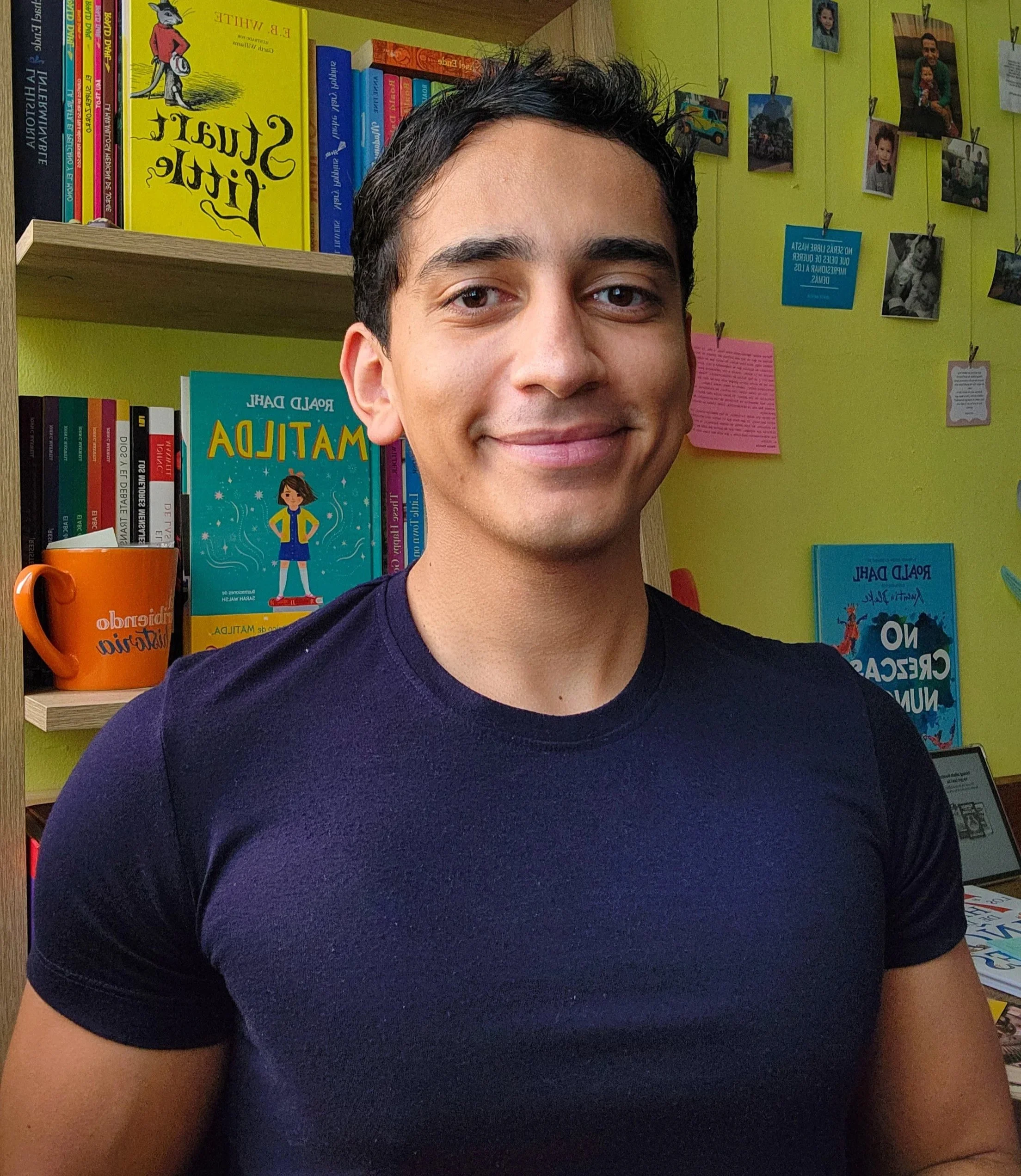 Me encuentras en mi cuarto, mi cueva, desde donde trabajo, escribo y leo… leo mucho, es mi escape de la realidad, aunque mi vida sea bastante buena. También me hallas en una librería infantil, sentado en el suelo revisando libros, estudiándolos, admirándolos, definiendo para qué tipo de lector serían.