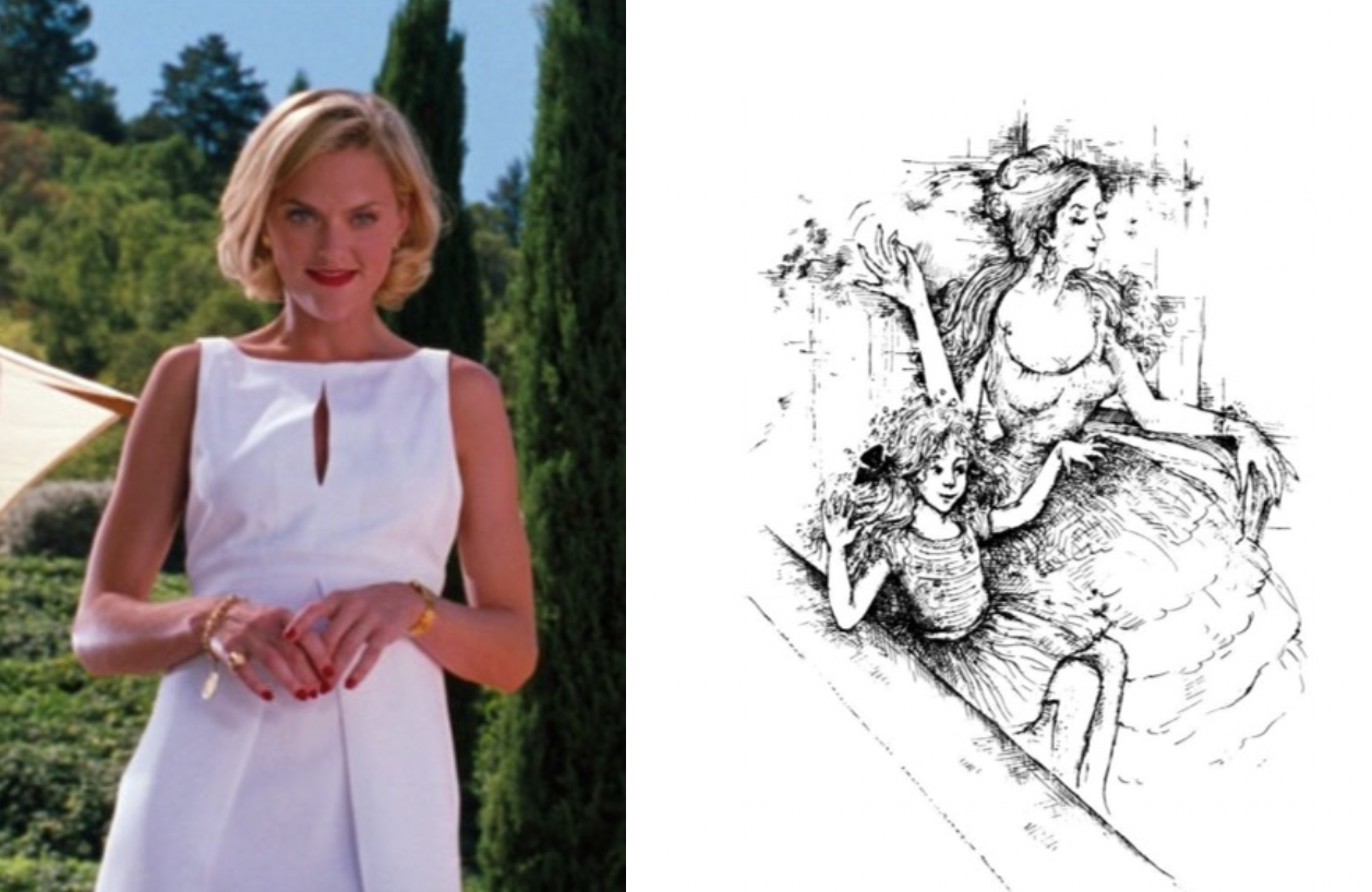 Por otro lado, en vez de Meredith Blake contamos con Irene Gerlach, la hija de un hotelero que sí ama al padre de las niñas y no es una oportunista odiosa. Cabe destacar que cuando Lottie (pretendiendo ser Lisa) se porta grosera con ella, Irene le dice que no dirá nada, pues no quiere que su padre la castigue. [Te quiero mucho, Irene.]