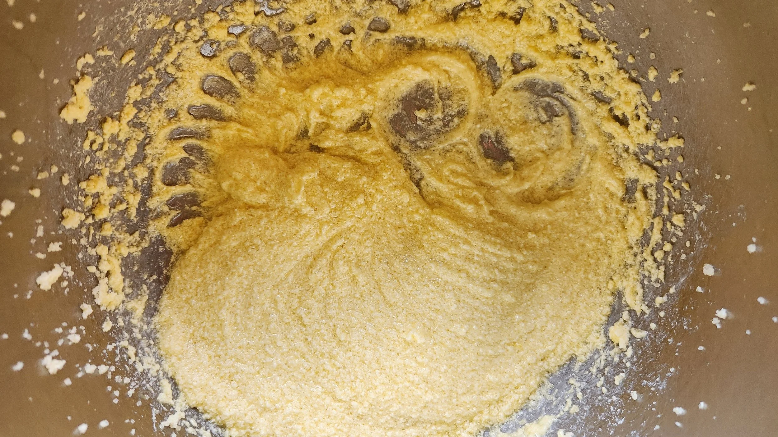 5. Añade los ingredientes previos a la mezcla de la mantequilla, el azúcar y el huevo. Vuelve a batir.